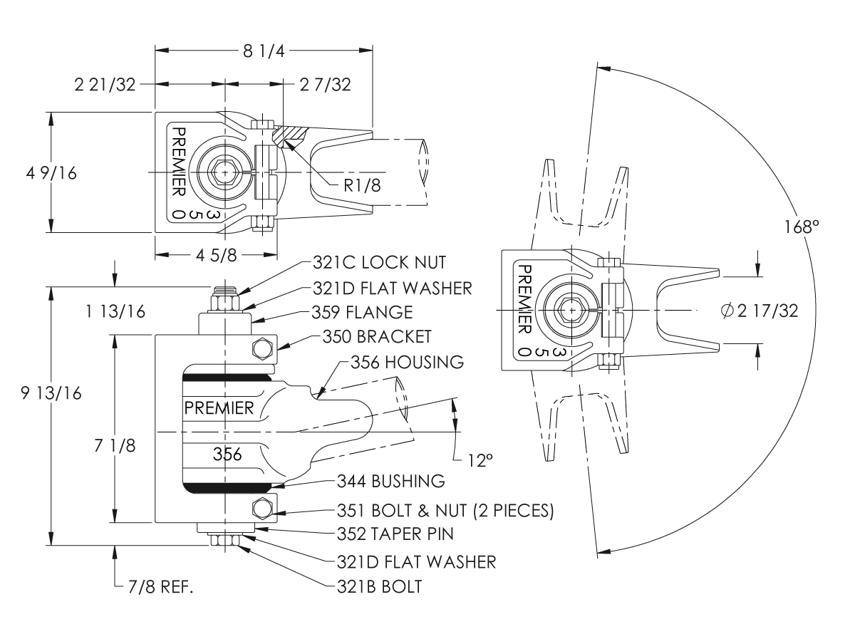 Premier’s 330 & 320A Hinge Assemblies are available with either rubber or poly bushings. This assembly can be purchased as a PAIR of hinges only. Check out the Installation Guide and Service Guidelines tabs below for additional information!