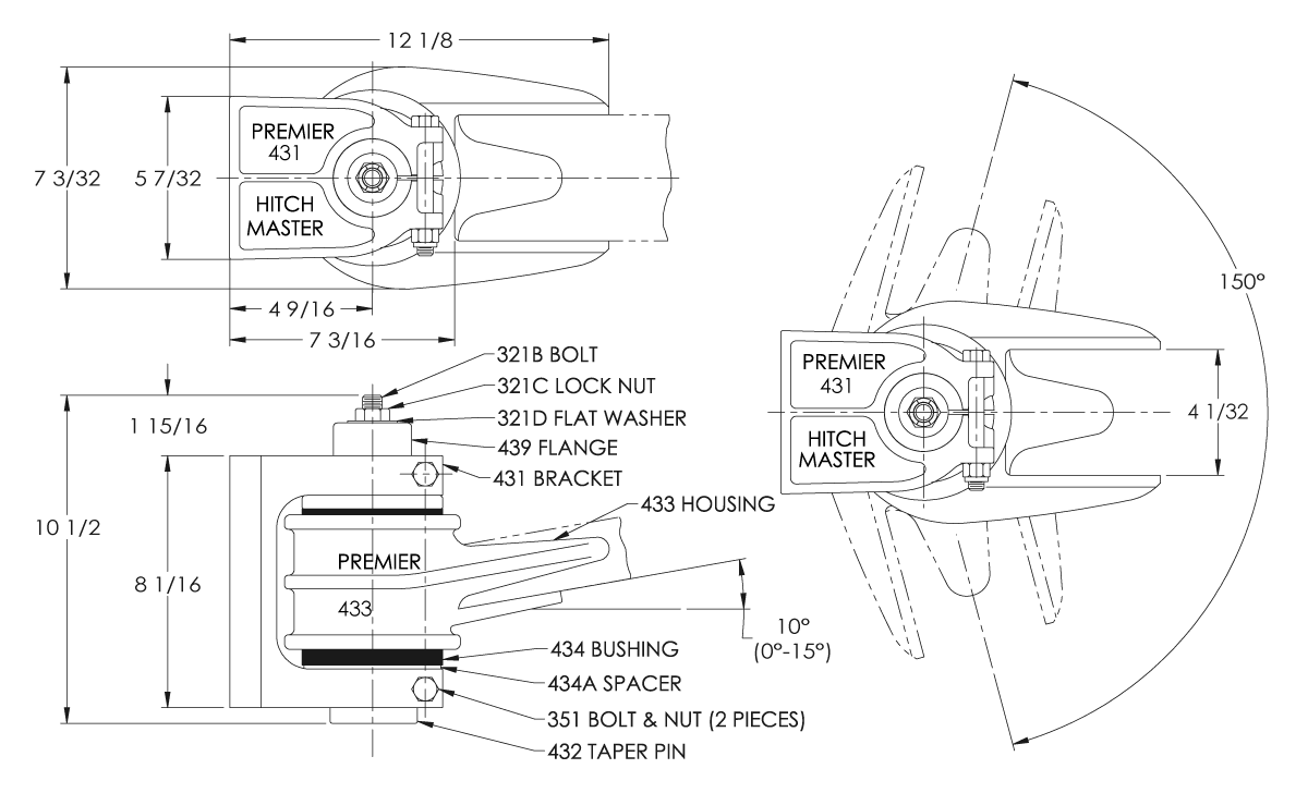 Premier’s 430 & 430A Hinge Assemblies are available with either rubber or poly bushings. This assembly can be purchased as a PAIR of hinges only and boasts a gross trailer weight of 150,000 lbs. Check out the Installation Guide and Service Guidelines tabs below for additional information!