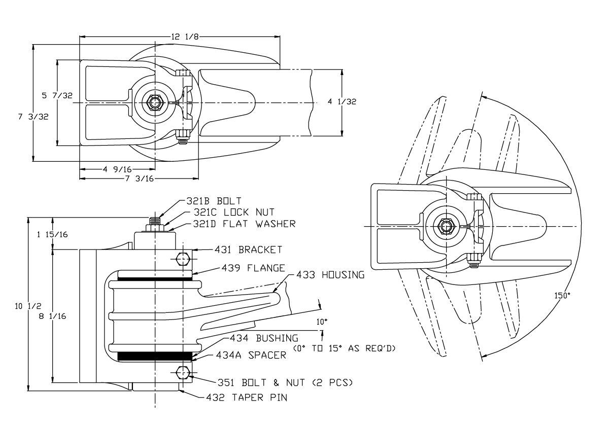 430A10000973 PAIR Hinges, Poly Bushings321B Bolt, 321C Nut, 321D Flat Washer (2), 351 Bolt/Nut (2), 431 Bracket, 432 Taper Pin, 433 Housing, 434A Spacer, 434B Bushing, 439 Flange