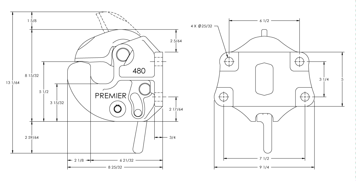 One of our highest capacity, non-air couplings, the 480 Coupling has high strength latch components that are strike-resistant and concealed within the coupling body. Conveniently located grease zerks provide for easy maintenance of internal components. With a maximum gross trailer weight of 130,000 lbs. and 30,000 lbs. latch capacity, Premier’s 480 Coupling is ideal for all of your heavy-duty applications.