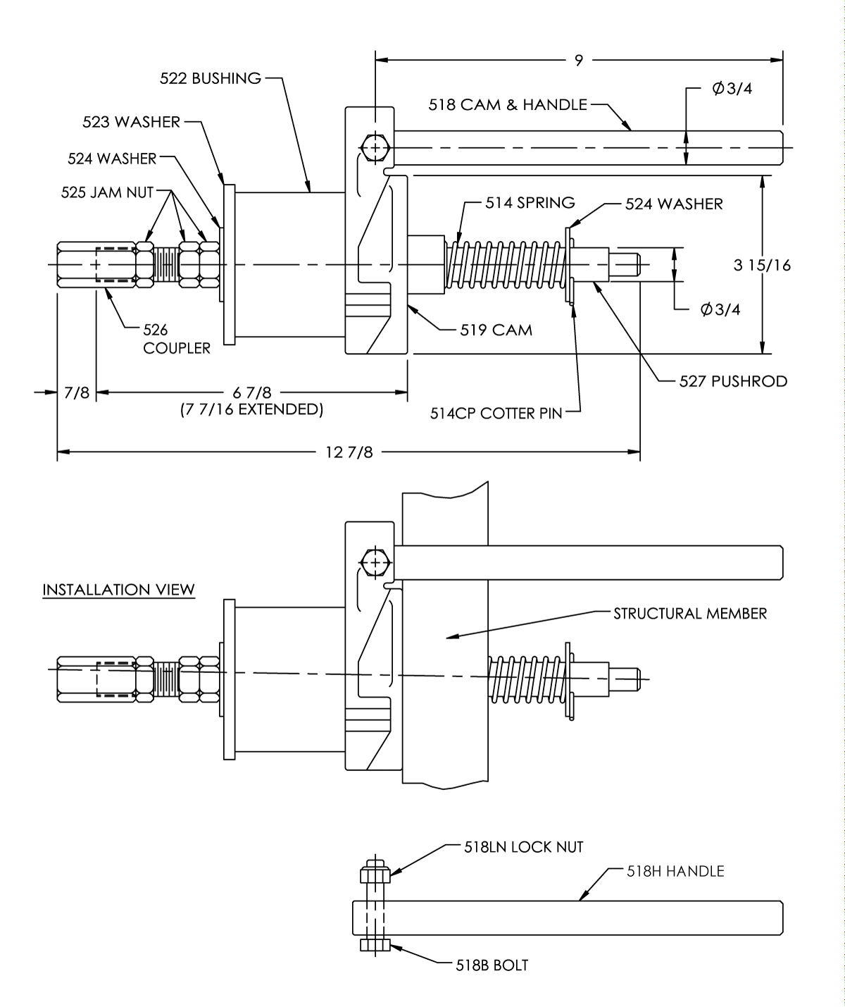 518HK10004788Handle Kit518B Bolt, 518H Handle, 518LN Locknut