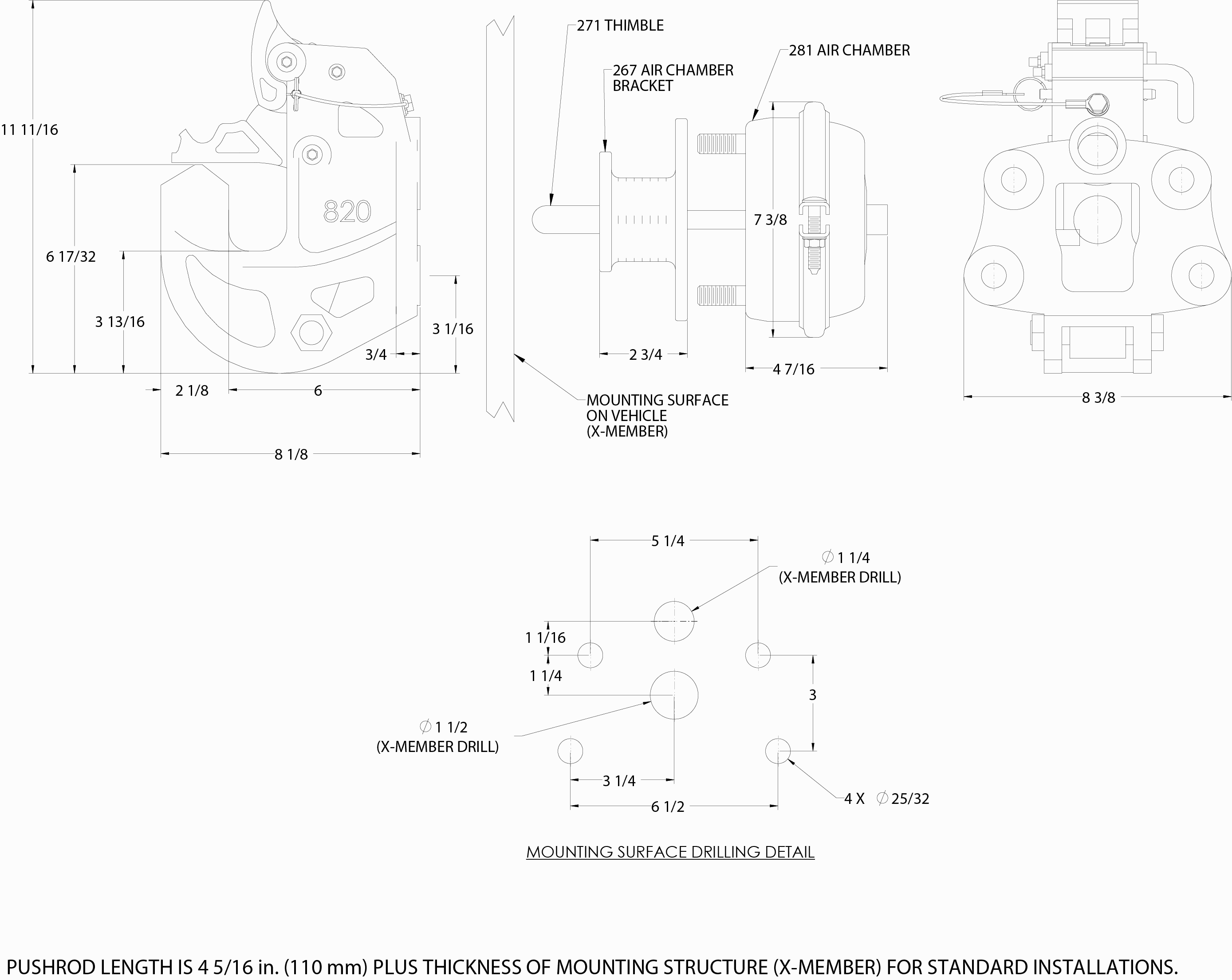 | 820ELA | 10004805 | 820EL Coupling, 834K Airline Kit, 509 Bolt Kit, 281 Air Service Chamber, 267 Air Chamber Adapter Bracket, 271 Thimble |